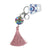 Pink Hamsa Tassel Keychain measures 7.5 inches long.