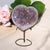 Lavender Aura Heart Geode on Stand. Size, Shape, and Color vary. Sizes range from 4 to 6 inches tall.