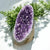 Large Amethyst Geode, Polished with flat base. Size, shape, and color vary. Sizes range from 4 to 9 inches tall. Made in Brazil.
