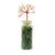 Jar is approx. 2" tall filled with Green Aventurine chips with a 1" tall tree on top made with Rose Quartz Chips.