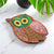 Hand painted wooden owl carving is a versatile piece. Use it as a trinket dish or hang it on the wall. Assorted colors.